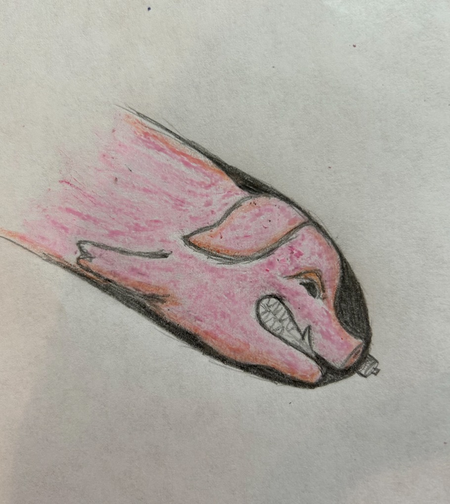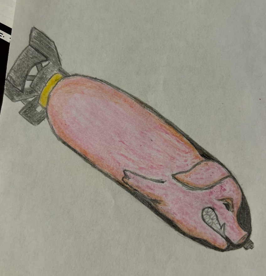 I started with a sketch and crayon coloring of the pig on the bomb.