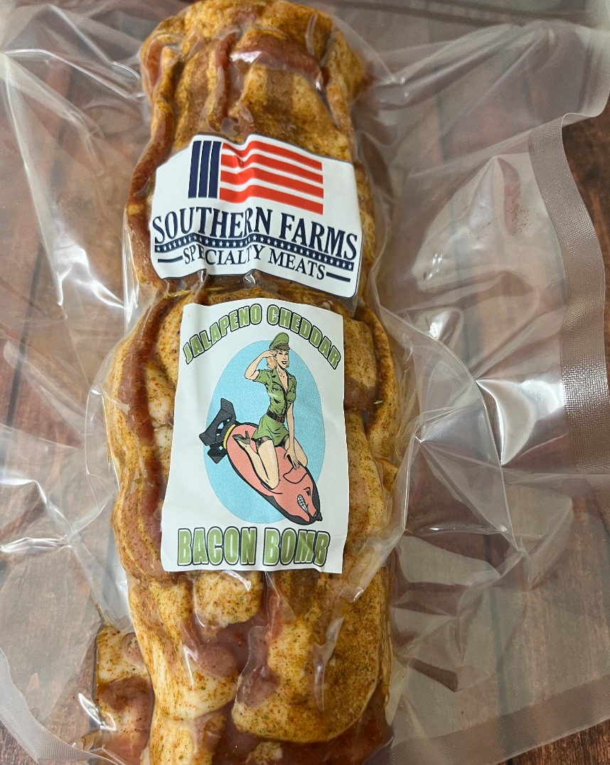 And finally, Jady got sticker made and put them on his final product, the Souther Farms Specialty Meats Bacon Bomb.